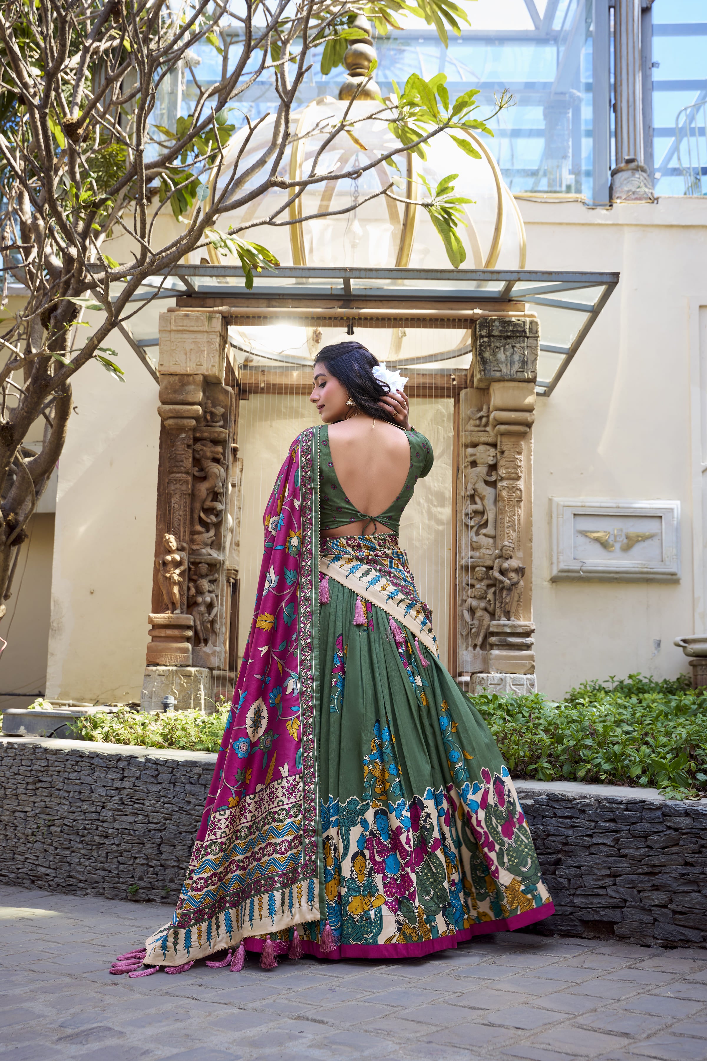 Each NITYA lehenga is crafted with meticulous attention to detail, ensuring you receive a masterpiece that makes you feel confident, beautiful, and radiant. The combination of traditional Tusser silk, intricate floral prints, vibrant Gotta Patti work, and modern silhouette creates a timeless piece that will be cherished in your wardrobe for years to come.